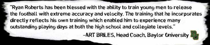 Has been conducting and coaching quarterbacks for 5 years...has been tutored by former Midwestern State OC/QB Coach and current Atlanta Falcon offensive coach, Glenn Thomas. Also coached by former Baylor QB Coach and current Dallas Cowboys offensive coach Wes Phillips...has played college quarterback under 3 separate spread offenses in Midwestern State, Baylor (Texas Tech spread), and Baylor (Art Briles spread)...Received Master's Degree from Baylor University in Sport Pedagogy and Coaching in December 2009.